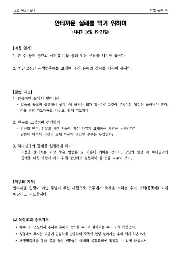 * 2022년 11월 13일 나눔터(목원용) 가야예배당