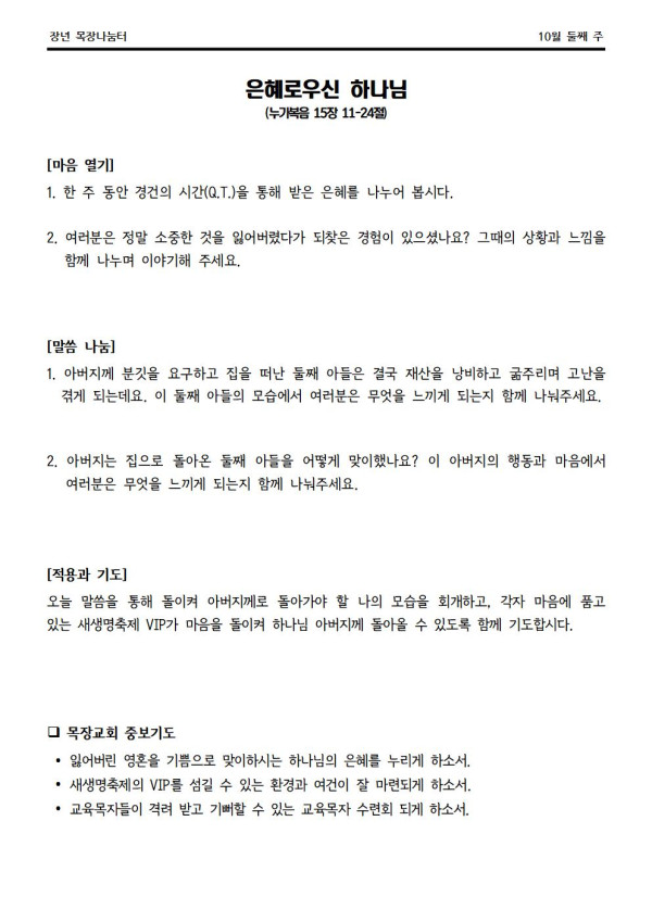 2022년 10월 9일 나눔터(목원용) 센텀예배당