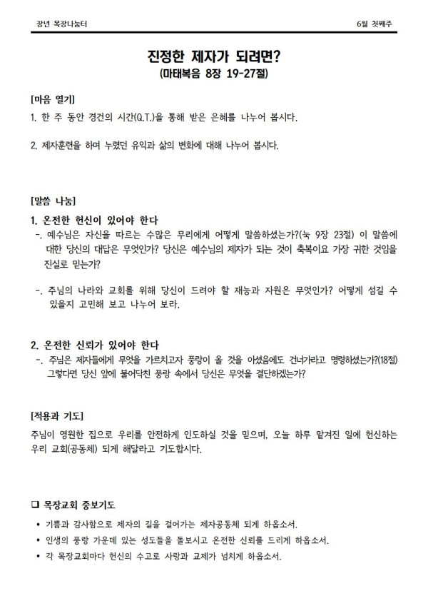 2022년 6월 5일 나눔터(목원용) 가야예배당