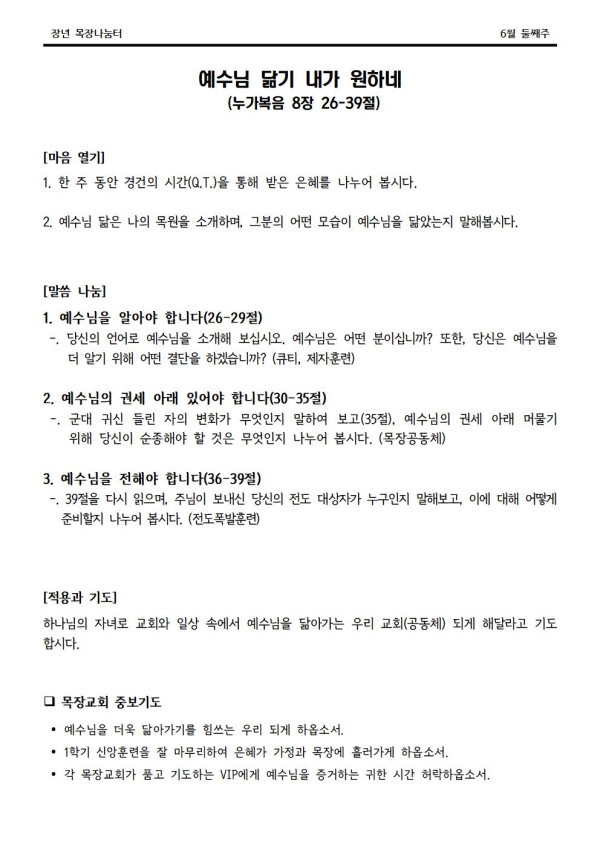 * 2022년 6월 12일 나눔터(목원용) 가야예배당