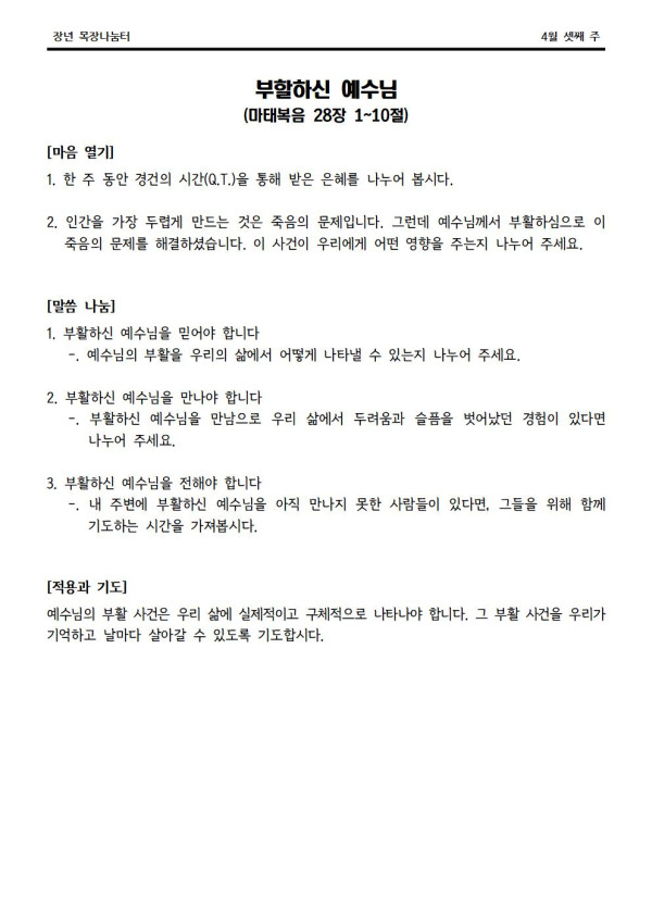 2022년 4월 17일 나눔터(목원용) 센텀예배당
