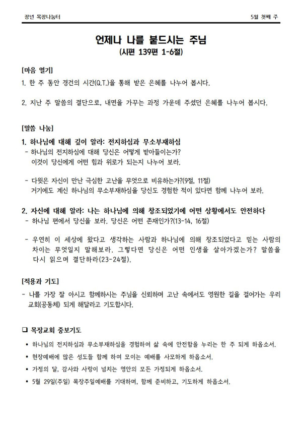 * 2022년 5월 1일 나눔터(목원용) 가야예배당