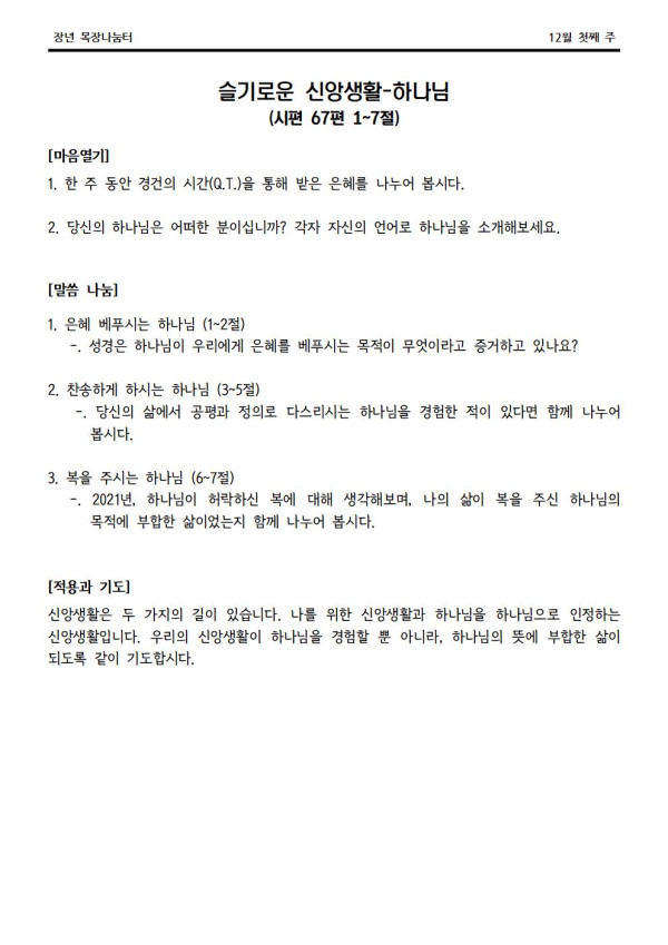 2021년 12월 5일 나눔터(목원용) 센텀예배당