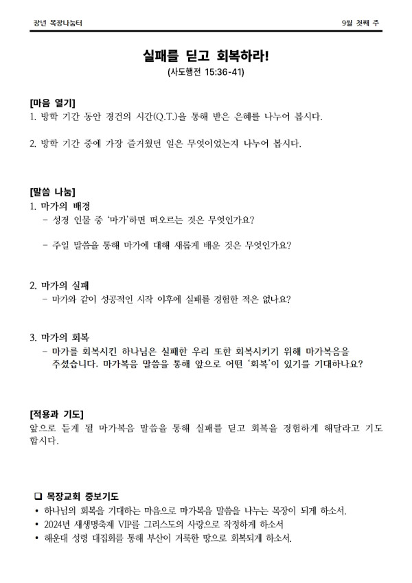 2024년 9월 1일 나눔터(목원용) 센텀예배당
