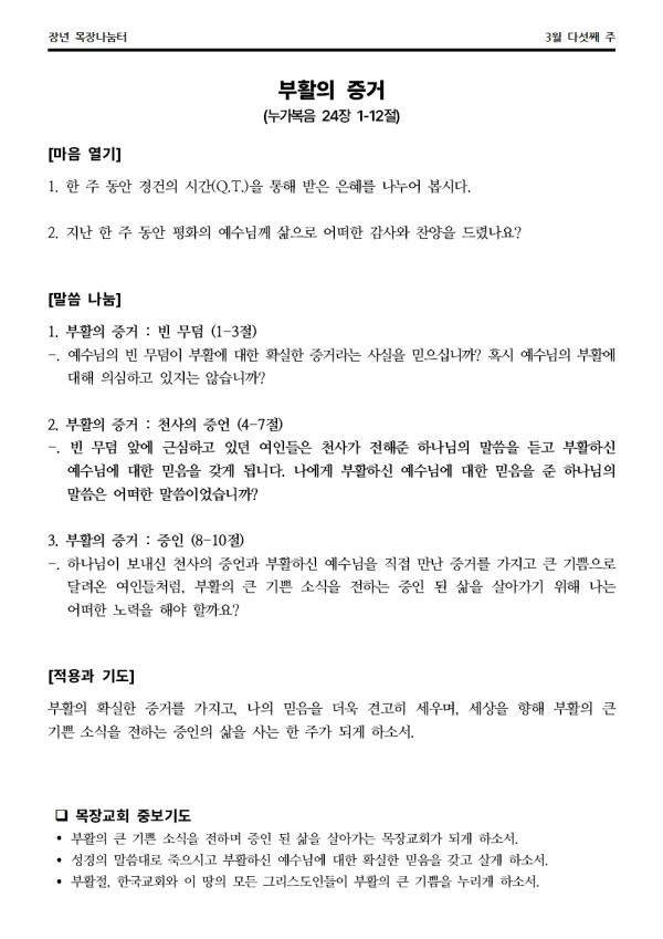 2024년 3월 31일 나눔터(목원용) 센텀예배당
