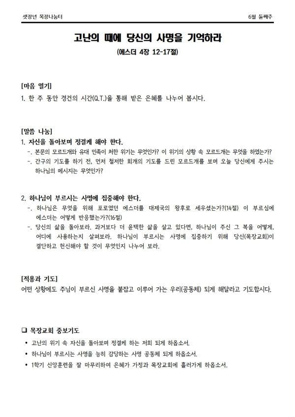 2023년 6월 11일 나눔터(목원용) 가야예배당