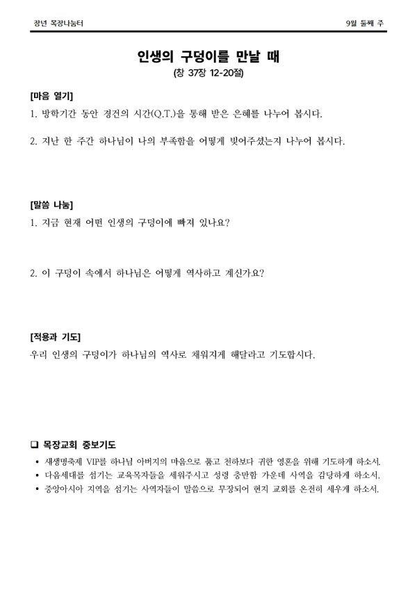 2023년 9월 10일 나눔터(목원용) 센텀예배당
