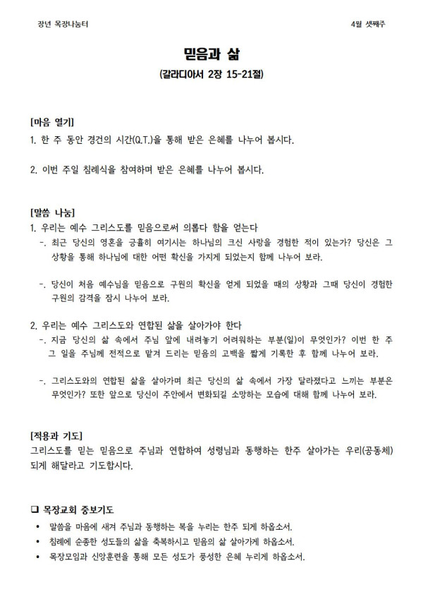 2023년 4월 16일 나눔터(목원용) 가야예배당