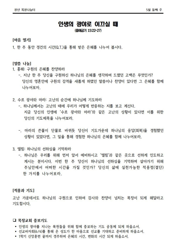* 2023년 5월 28일 나눔터(목원용) 가야예배당