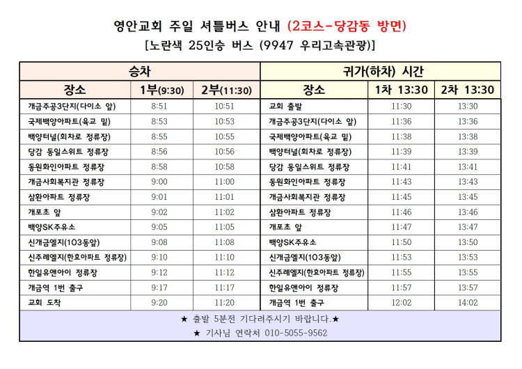 ◆ 교회 셔틀 버스 운행 안내