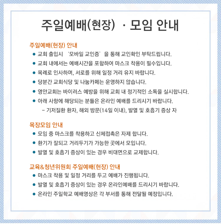 주일예배(현장) 안내
