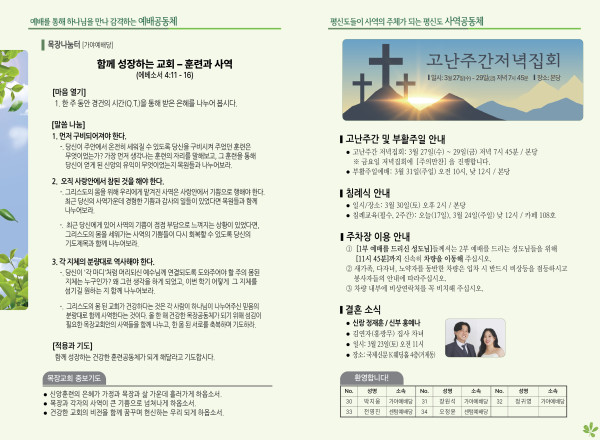 2024년 3월 17일 주보 (가야예배당) 페이지 정보 작성자 관리지기 작성일24-03-16 11:17 조회3,036회 댓글0건 관련링크 목록 본문 2024년 3월 17일 주보 (가야예배당) 댓글목록 등록된 댓글이 없습니다. 목록