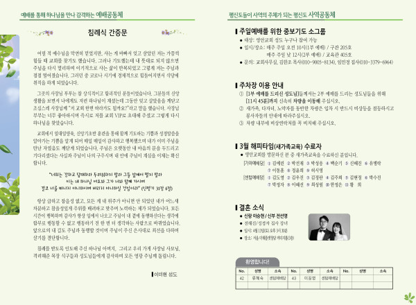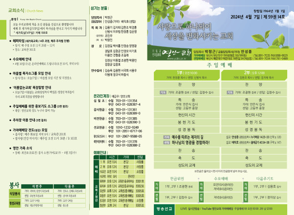 2024년 4월 7일 주보 (가야예배당) 페이지 정보 작성자 관리지기 작성일24-04-06 10:50 조회2,893회 댓글0건 관련링크 목록 본문 2024년 4월 7일 주보 (가야예배당) 댓글목록 등록된 댓글이 없습니다. 목록
