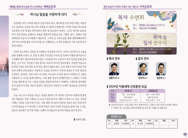 2024년 2월 18일 주보 (센텀예배당) 페이지 정보 작성자 관리지기 작성일24-02-17 12:10 조회2,887회 댓글0건 관련링크 목록 본문 2024년 2월 18일 주보 (센텀예배당) 댓글목록 등록된 댓글이 없습니다. 목록