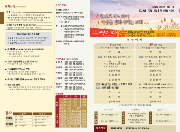 2023년 10월 1일 주보 (가아예배당) 페이지 정보 작성자 관리지기 작성일23-09-26 17:21 조회3,318회 댓글0건 관련링크 목록 본문 * 2023년 10월 1일 주보 (가아예배당) 댓글목록 등록된 댓글이 없습니다. 목록