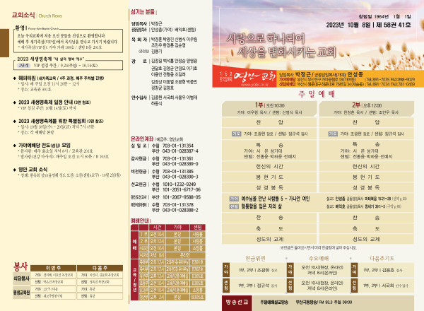 2023년 10월 8일 주보 (가야예배당) 페이지 정보 작성자 관리지기 작성일23-09-26 17:21 조회3,704회 댓글0건 관련링크 목록 본문 * 2023년 10월 8일 주보 (가야예배당) 댓글목록 등록된 댓글이 없습니다. 목록