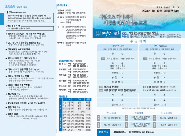 2023년 8월 13일 주보 (센텀예배당) 페이지 정보 작성자 관리지기 작성일23-08-12 10:17 조회3,361회 댓글0건 관련링크 목록 본문 2023년 8월 13일 주보 (센텀예배당) 댓글목록 등록된 댓글이 없습니다. 목록