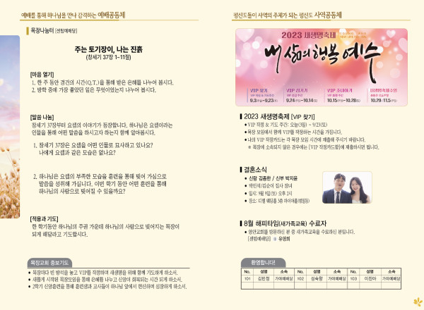 2023년 9월 3일 주보 (센텀예배당) 페이지 정보 작성자 관리지기 작성일23-09-02 10:33 조회3,192회 댓글0건 관련링크 목록 본문 2023년 9월 3일 주보 (센텀예배당) 댓글목록 등록된 댓글이 없습니다. 목록