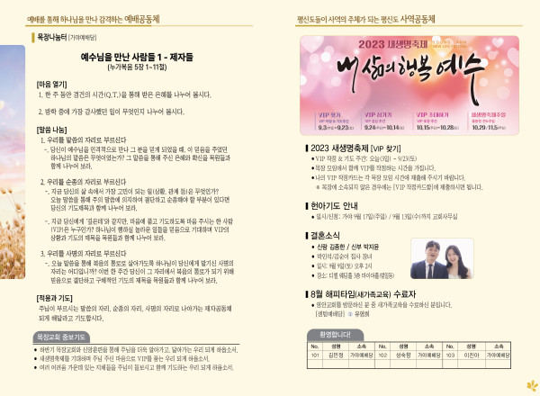 2023년 9월 3일 주보 (가야예배당) 페이지 정보 작성자 관리지기 작성일23-09-02 11:53 조회3,498회 댓글0건 관련링크 목록 본문 * 2023년 9월 3일 주보 (가야예배당) 댓글목록 등록된 댓글이 없습니다. 목록