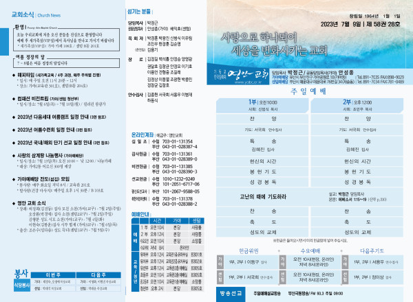 2023년 7월 9일 주보 (가야예배당) 페이지 정보 작성자 관리지기 작성일23-07-08 11:27 조회3,514회 댓글0건 관련링크 목록 본문 2* 023년 7월 9일 주보 (가야예배당) 댓글목록 등록된 댓글이 없습니다. 목록