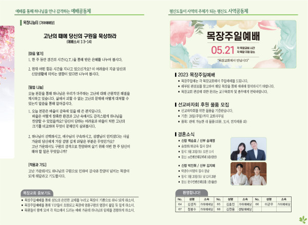 2023년 5월 14일 주보 (가야예배당) 페이지 정보 작성자 관리지기 작성일23-05-13 11:05 조회3,717회 댓글0건 관련링크 목록 본문 * 2023년 5월 14일 주보 (가야예배당) 댓글목록 등록된 댓글이 없습니다. 목록
