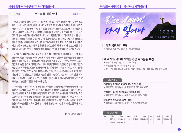 2023년 2월 26일 주보 페이지 정보 작성자 관리지기 작성일23-02-25 12:01 조회4,186회 댓글0건 관련링크 목록 본문 *2023년 2월 26일 주보 댓글목록 등록된 댓글이 없습니다. 목록