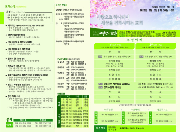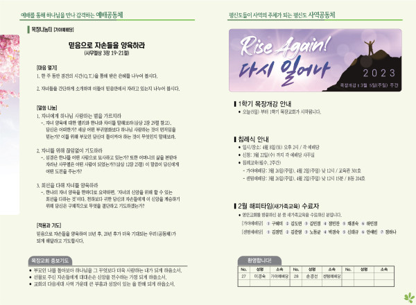2023년 3월 5일 주보 (가야예배당) 페이지 정보 작성자 관리지기 작성일23-03-04 11:20 조회3,861회 댓글0건 관련링크 목록 본문 * 2023년 3월 5일 주보 (가야예배당) 댓글목록 등록된 댓글이 없습니다. 목록