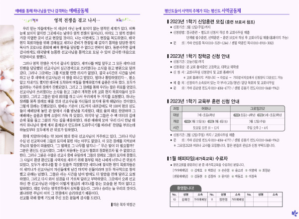2023년 2월 5일 주보 페이지 정보 작성자 관리지기 작성일23-02-04 11:27 조회4,181회 댓글0건 관련링크 목록 본문 * 2023년 2월 5일 주보 댓글목록 등록된 댓글이 없습니다. 목록
