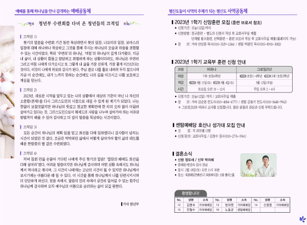 2023년 2월 12일 주보 페이지 정보 작성자 관리지기 작성일23-02-11 11:29 조회4,156회 댓글0건 관련링크 목록 본문 * 2023년 2월 12일 주보 댓글목록 등록된 댓글이 없습니다. 목록
