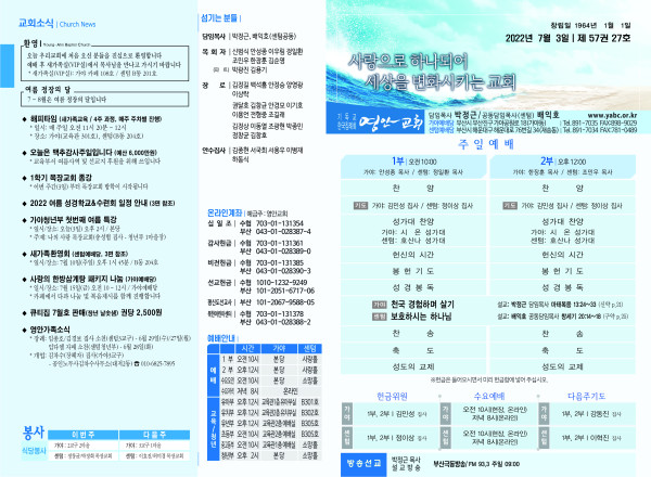 2022년 7월 3일 주보 (센텀예배당) 페이지 정보 작성자 관리지기 작성일22-07-02 11:39 조회4,631회 댓글0건 관련링크 목록 본문 2022년 7월 3일 주보 (센텀예배당) 댓글목록 등록된 댓글이 없습니다. 목록