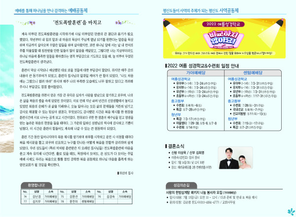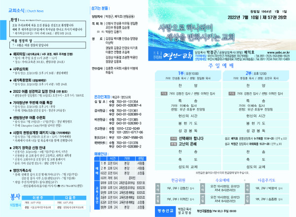 2022년 7월 10일 주보 페이지 정보 작성자 관리지기 작성일22-07-09 11:31 조회4,893회 댓글0건 관련링크 목록 본문 * 2022년 7월 10일 주보 댓글목록 등록된 댓글이 없습니다. 목록