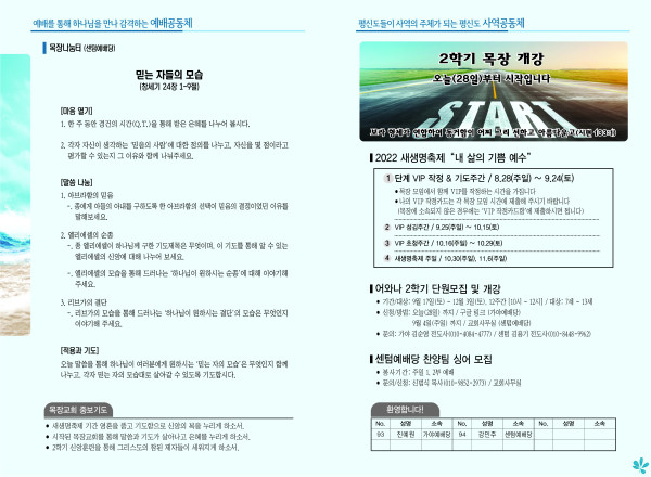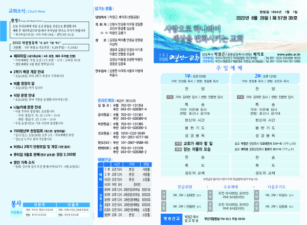 2022년 8월 28일 주보 (센텀예배당) 페이지 정보 작성자 관리지기 작성일22-08-27 11:41 조회4,218회 댓글0건 관련링크 목록 본문 2022년 8월 28일 주보 (센텀예배당) 댓글목록 등록된 댓글이 없습니다. 목록