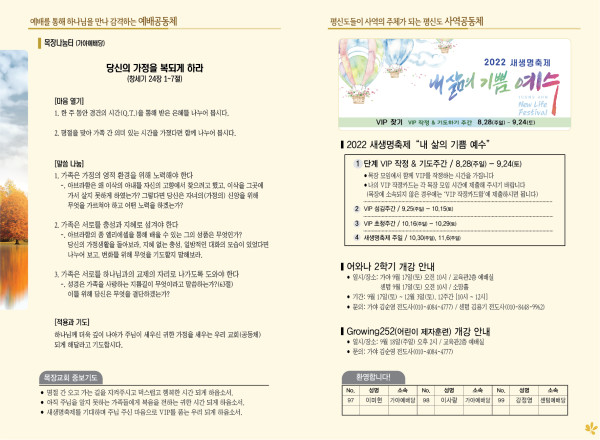 2022년 9월 11일 주보 (가야예배당) 페이지 정보 작성자 관리지기 작성일22-09-11 08:48 조회4,237회 댓글0건 관련링크 목록 본문 2022년 9월 11일 주보 (가야예배당) 댓글목록 등록된 댓글이 없습니다. 목록