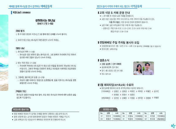 2022년 6월 5일 주보 (센텀예배당) 페이지 정보 작성자 관리지기 작성일22-06-04 11:35 조회4,537회 댓글0건 관련링크 목록 본문 2022년 6월 5일 주보 (센텀예배당) 댓글목록 등록된 댓글이 없습니다. 목록