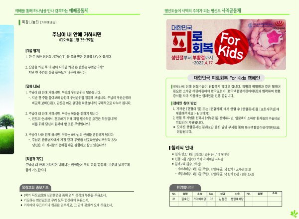 2022년 3월 20일 주보 (가야예배당) 페이지 정보 작성자 관리지기 작성일22-03-19 11:53 조회5,250회 댓글0건 관련링크 목록 본문 *2022년 3월 20일 주보 (가야예배당) 댓글목록 등록된 댓글이 없습니다. 목록