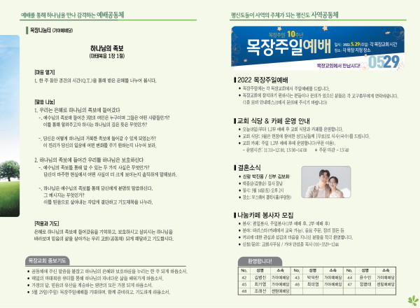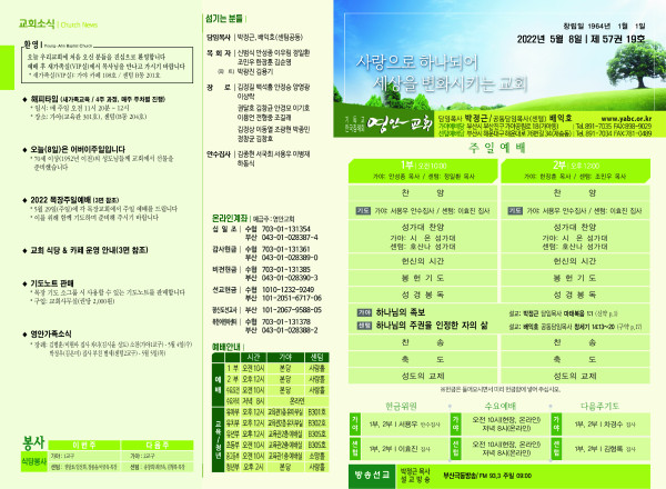 2022년 5월 8일 주보 (가야예배당) 페이지 정보 작성자 관리지기 작성일22-05-07 11:37 조회4,829회 댓글0건 관련링크 목록 본문 * 2022년 5월 8일 주보 (가야예배당) 댓글목록 등록된 댓글이 없습니다. 목록