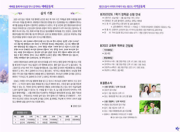2022년 1월 9일 주보 페이지 정보 작성자 관리지기 작성일22-01-08 10:07 조회5,539회 댓글0건 관련링크 목록 본문 * 2022년 1월 9일 주보 댓글목록 등록된 댓글이 없습니다. 목록