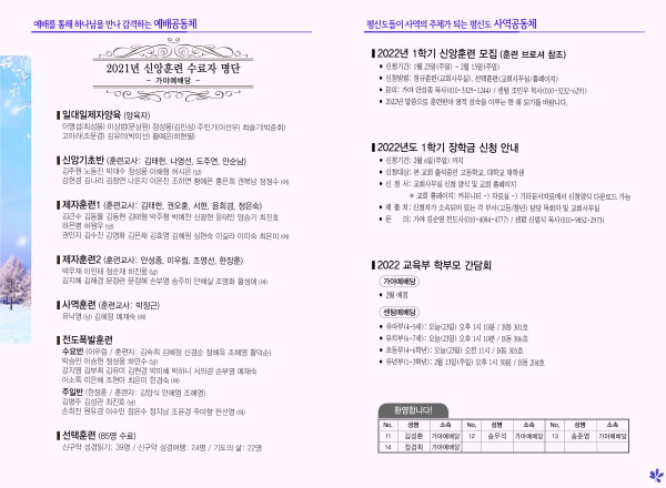 2022년 1월 23일 주보 (가야예배당) 페이지 정보 작성자 관리지기 작성일22-01-22 11:46 조회5,301회 댓글0건 관련링크 목록 본문 * 2022년 1월 23일 주보 (가야예배당) 댓글목록 등록된 댓글이 없습니다. 목록