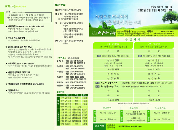 2022년 3월 6일 주보 (가야예배당) 페이지 정보 작성자 관리지기 작성일22-03-05 11:40 조회5,083회 댓글0건 관련링크 목록 본문 2022년 3월 6일 주보 (가야예배당) 댓글목록 등록된 댓글이 없습니다. 목록