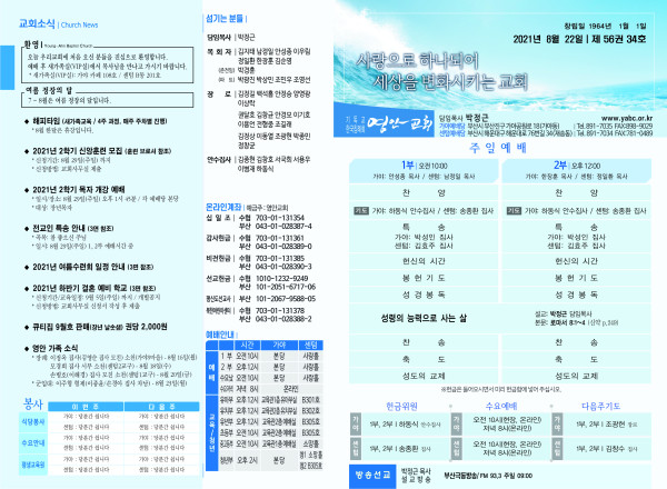 2021년 8월 22일 주보 페이지 정보 작성자 관리지기 작성일21-08-21 11:40 조회6,718회 댓글0건 관련링크 목록 본문 2021년 8월 22일 주보 댓글목록 등록된 댓글이 없습니다. 목록