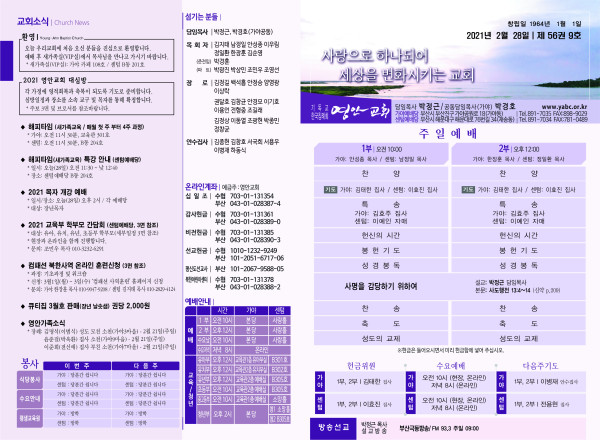 2021년 2월 28일 주보 페이지 정보 작성자 관리지기 작성일21-02-27 12:08 조회6,716회 댓글0건 관련링크 목록 본문 *2021년 2월 28일 주보 댓글목록 등록된 댓글이 없습니다. 목록