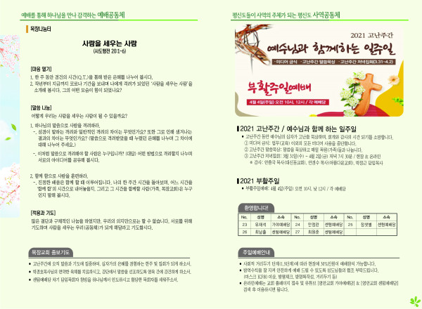 2021년 3월 28일 주보 페이지 정보 작성자 관리지기 작성일21-03-27 11:12 조회6,953회 댓글0건 관련링크 목록 본문 2021년 3월 28일 주보 댓글목록 등록된 댓글이 없습니다. 목록