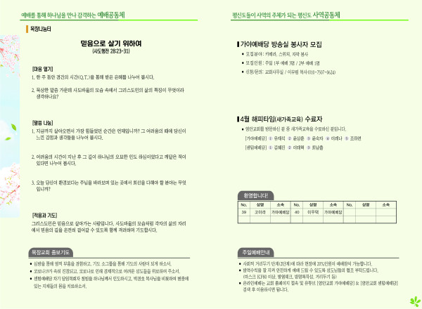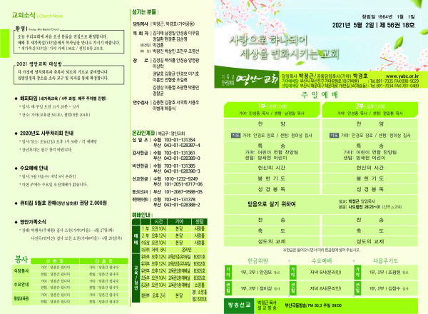 2021년 5월 2일 주보 페이지 정보 작성자 관리지기 작성일21-05-01 09:31 조회6,431회 댓글0건 관련링크 목록 본문 *2021년 5월 2일 주보 댓글목록 등록된 댓글이 없습니다. 목록