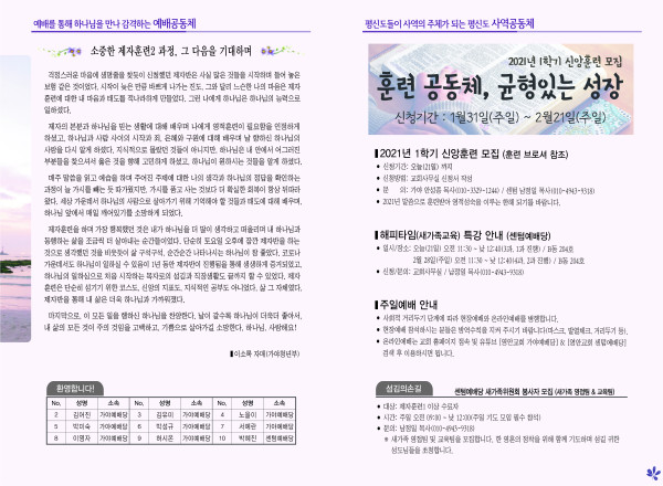 2021년 2월 21일 주보 페이지 정보 작성자 관리지기 작성일21-02-20 12:03 조회6,966회 댓글0건 관련링크 목록 본문 2021년 2월 21일 주보 댓글목록 등록된 댓글이 없습니다. 목록