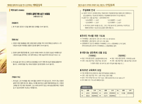 2020년 11월 29일 주보(센텀예배당) 페이지 정보 작성자 관리지기 작성일20-11-28 12:59 조회6,775회 댓글0건 관련링크 목록 본문 2020년 11월 29일 주보(센텀예배당) 댓글목록 등록된 댓글이 없습니다. 목록