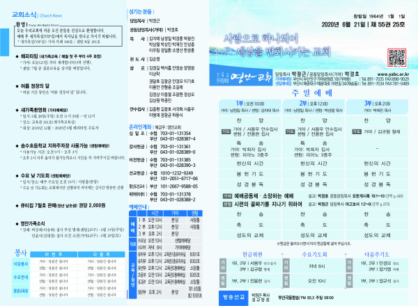 2020년 6월 21일 주보 페이지 정보 작성자 관리지기 작성일20-06-20 11:36 조회7,529회 댓글0건 관련링크 목록 본문 2020년 6월 21일 주보 댓글목록 등록된 댓글이 없습니다. 목록