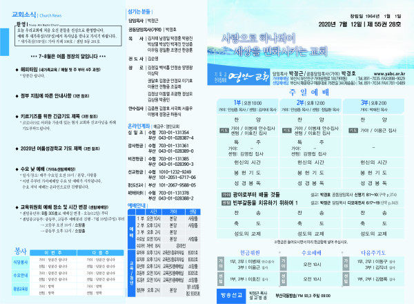 2020년 7월 12일 주보 페이지 정보 작성자 관리지기 작성일20-07-11 11:38 조회7,494회 댓글0건 관련링크 목록 본문 2020년 7월 12일 주보 댓글목록 등록된 댓글이 없습니다. 목록
