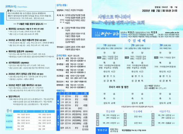 2020년 8월 2일 주보 페이지 정보 작성자 관리지기 작성일20-08-01 11:37 조회8,047회 댓글0건 관련링크 목록 본문 2020년 8월 2일 주보 댓글목록 등록된 댓글이 없습니다. 목록