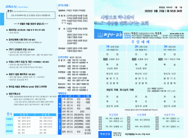 2020년 8월 23일 주보 페이지 정보 작성자 관리지기 작성일20-08-22 12:04 조회7,912회 댓글0건 관련링크 목록 본문 2020년 8월 23일 주보 댓글목록 등록된 댓글이 없습니다. 목록