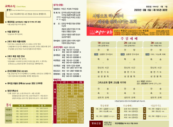 2020년 9월 6일 주보 페이지 정보 작성자 관리지기 작성일20-09-05 12:05 조회7,571회 댓글0건 관련링크 목록 본문 2020년 9월 6일 주보 댓글목록 등록된 댓글이 없습니다. 목록